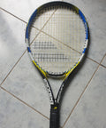 Très très peu utilisée, composition graphite, poids 265g, taille du tamis: 660cm2, équilibre: 34,5 cm, longueur 68,5 cm, rigidité 68 RA, grip en très bon état, cordage babolat Xcel jauge 1,30